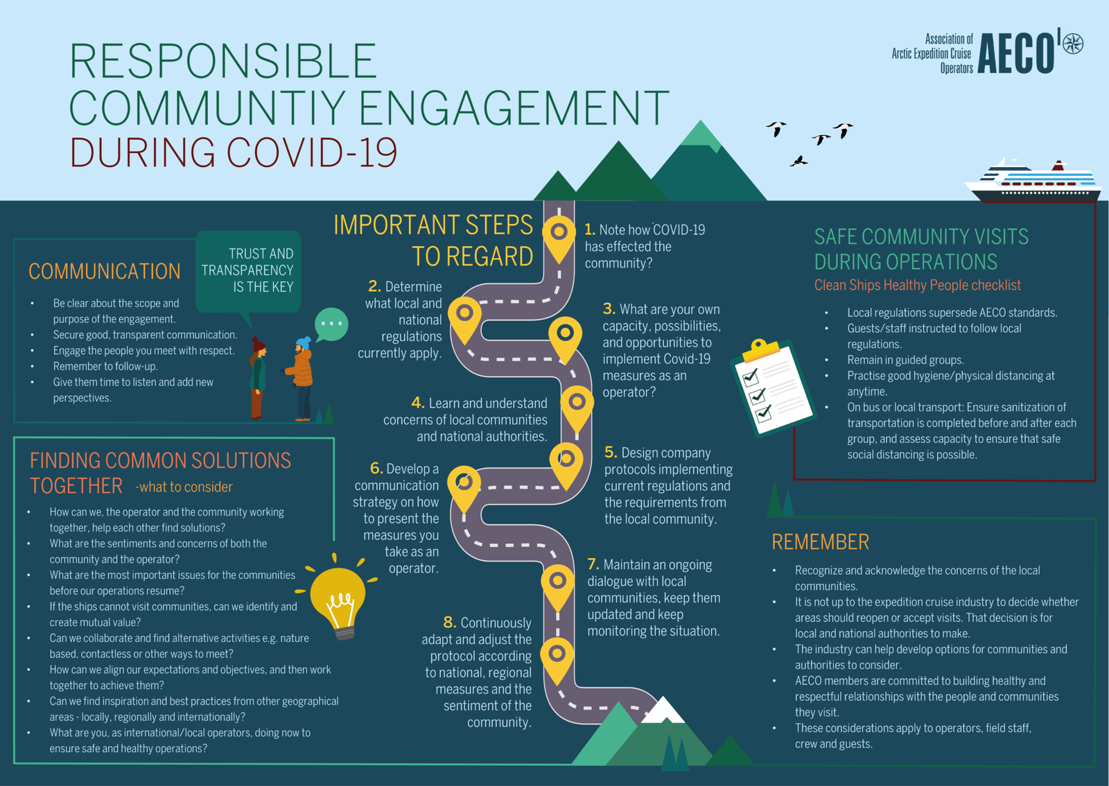 To facilitate dialogue between operators and local stakeholders, AECO has developed an infographic which outlines important principles for responsible community engagement. According to Frigg Jørgensen, executive director of the Association of Arctic Expedition Cruise Operators, community engagement is more important than ever.