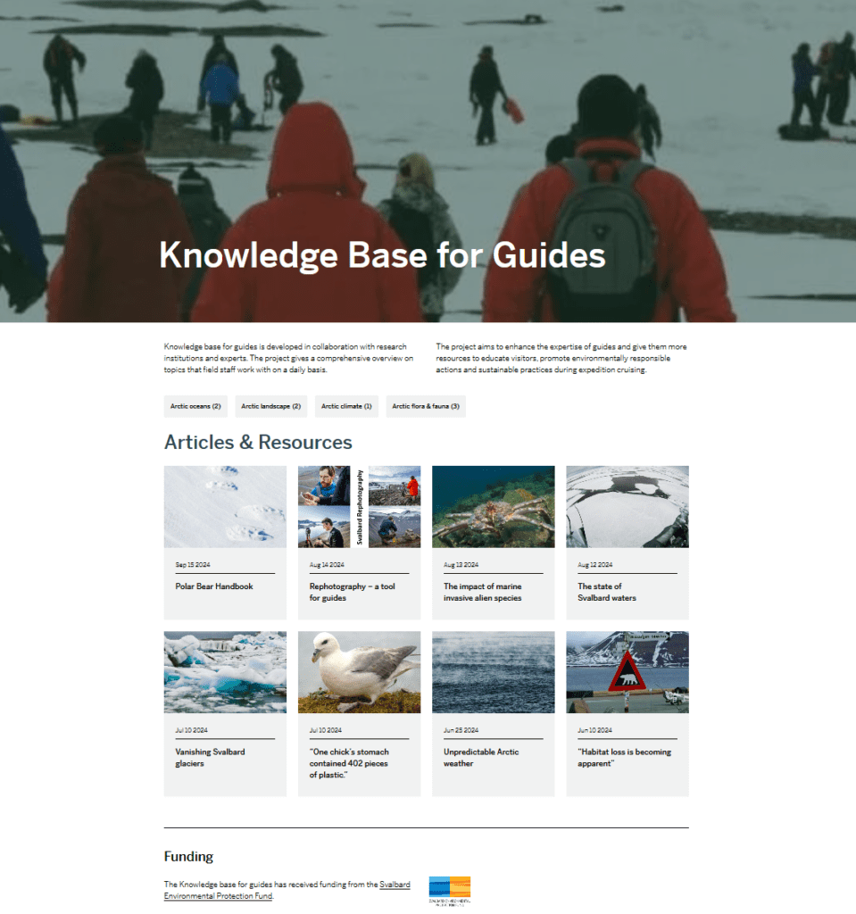 The Svalbard Environmental Protection Fund has funded the Knowledge Base for Guides that recently launched on AECO’s new website.