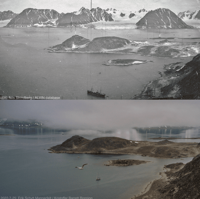 The project was conducted during the summers of 2019 and 2022, with new photos of sites taken around the same time as the historical photos from the ALVIN database and the Norwegian Polar Institute’s archives.